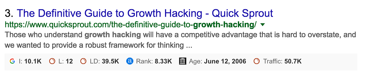 Entrepreneur.com is definitely a big name, and “growth hacking techniques” is in the title explicitly. This will be difficult to beat, but there are no links in the SEMRush index that point direct to the page.